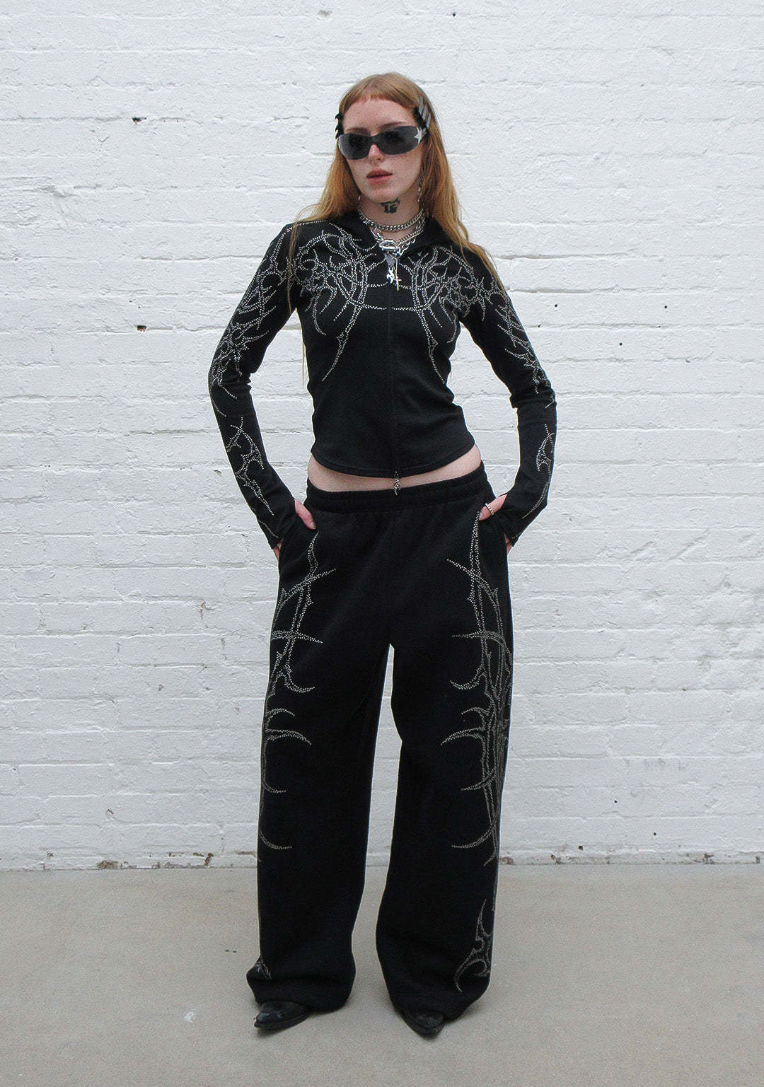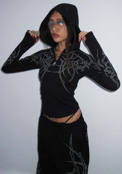HAUNT STUDDED SCULPT STRETCH ZIP HOODIE BLACK