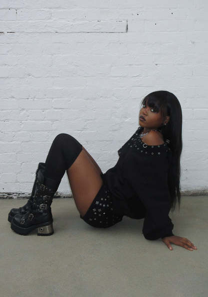 MIDNIGHT STUDDED MICRO HOTPANT SHORTS BLACK